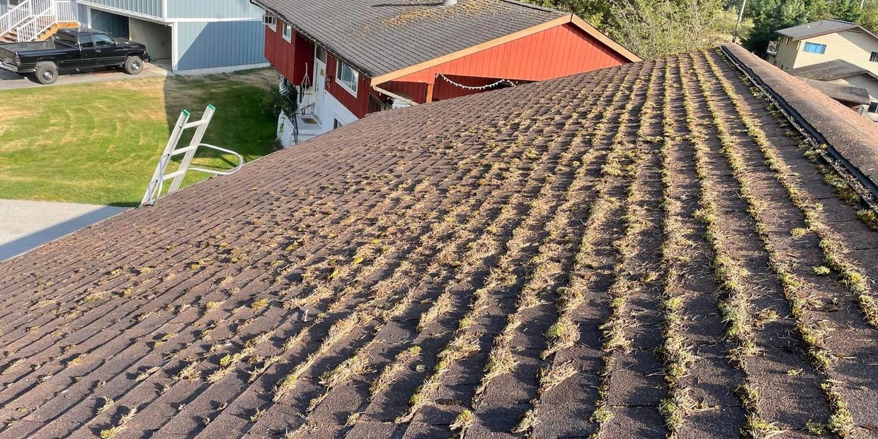 Moss buildup can trap moisture and cause premature wear to your roof. Our moss cleaning service safely removes existing growth and applies a treatment to help prevent regrowth, keeping shingles dry and reducing the risk of water damage and rot. Regular moss maintenance helps preserve the integrity of your building, extend the lifespan of your roof, avoid costly repairs, and improve overall curb appeal.